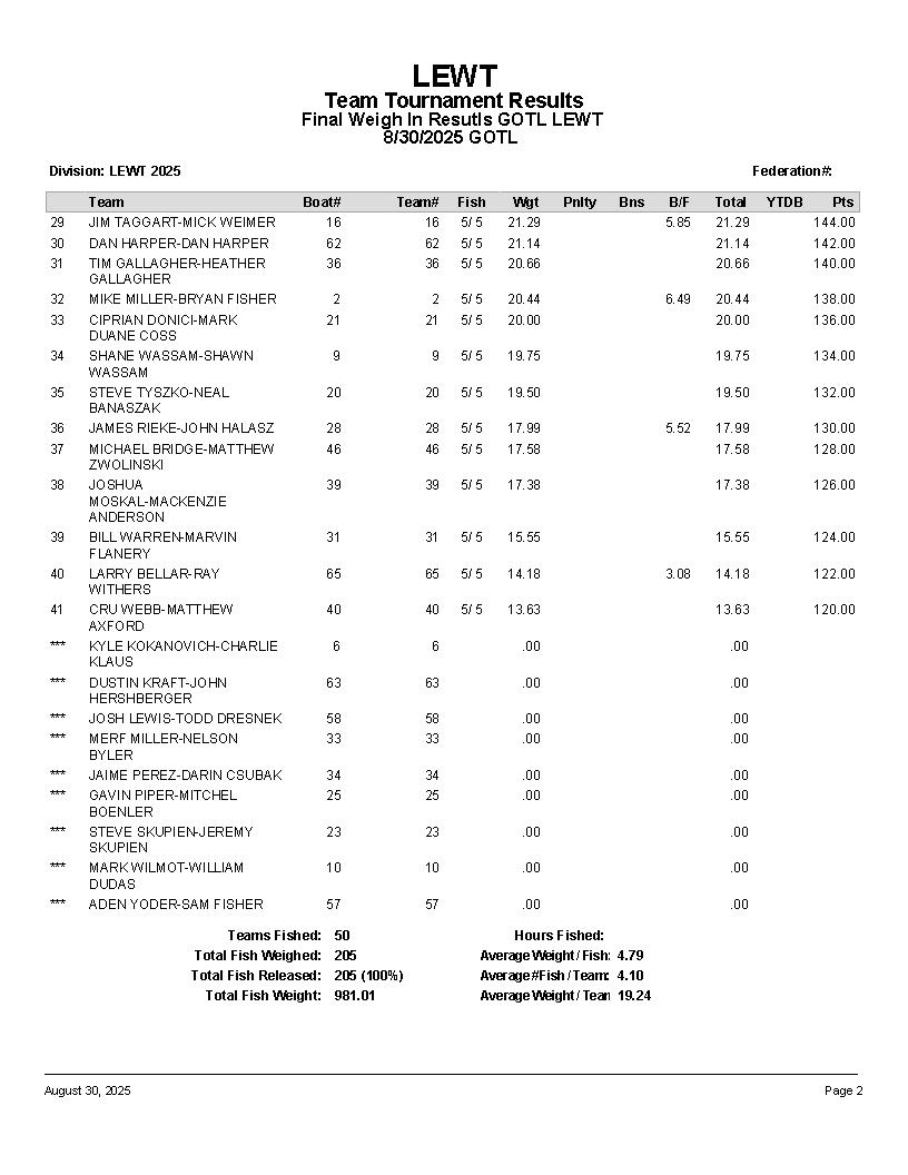 LEWT Lorain Results